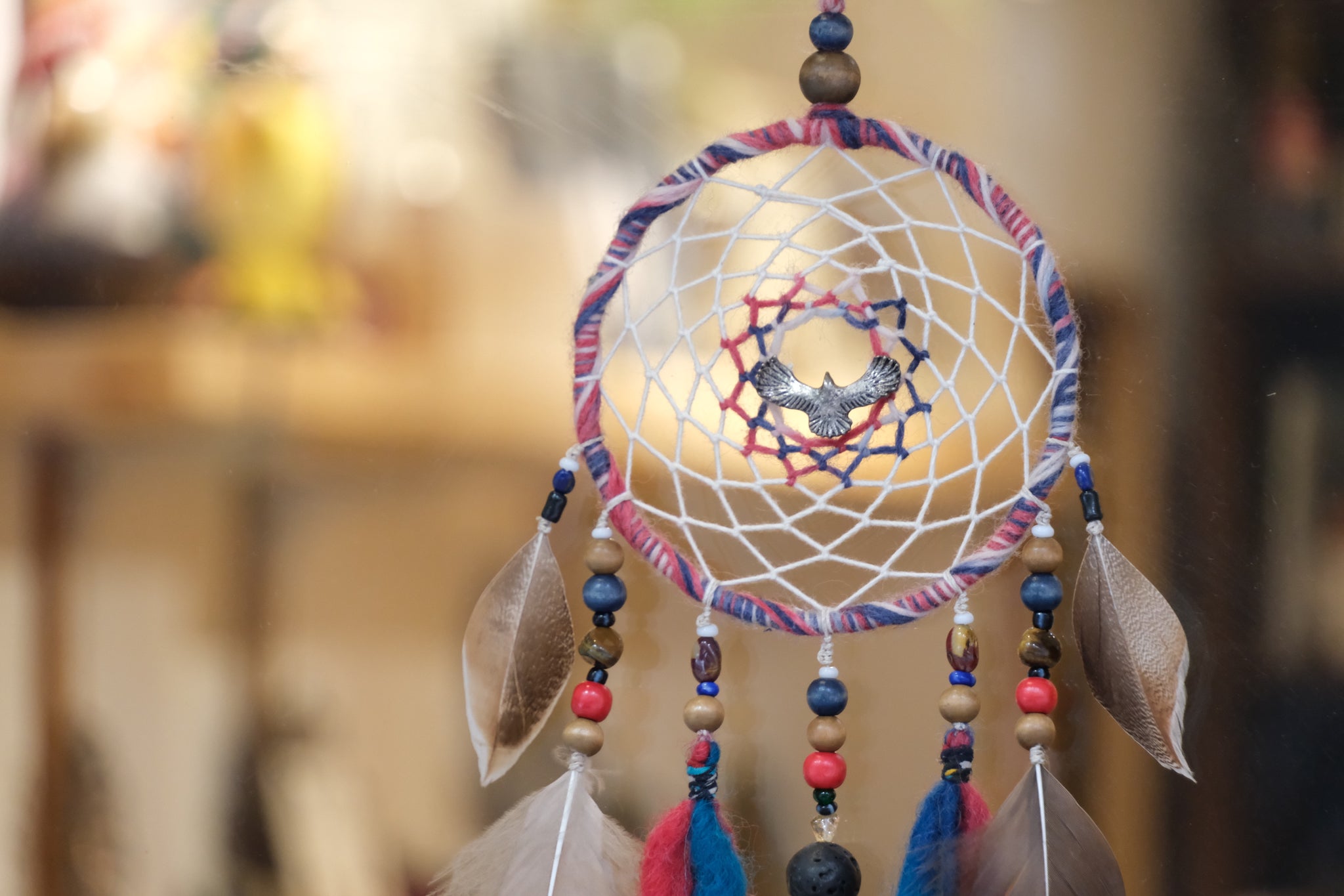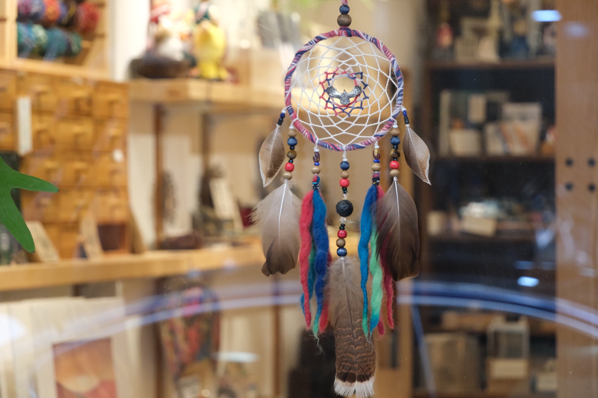 捕夢網的是北美原住民幸運物,古老原住民相傳捕夢網可以將惡夢從網中捕獲,將好夢透過羽毛下滑到夢境之內。