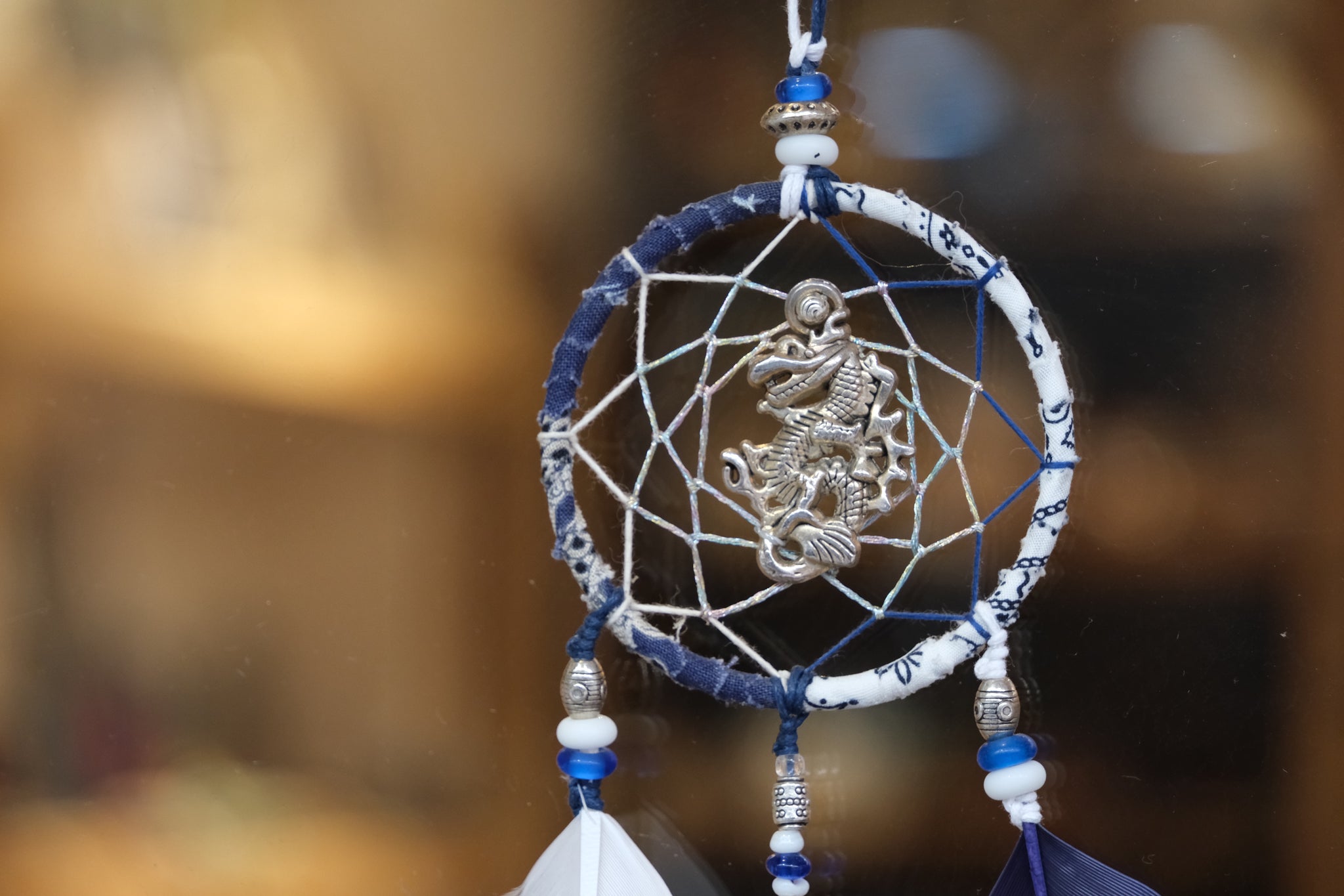 捕夢網的是北美原住民幸運物,古老原住民相傳捕夢網可以將惡夢從網中捕獲,將好夢透過羽毛下滑到夢境之內。